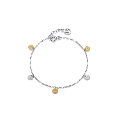 pulsera de cadena con cinco motivos colgantes chapas en dorado y plateado love you