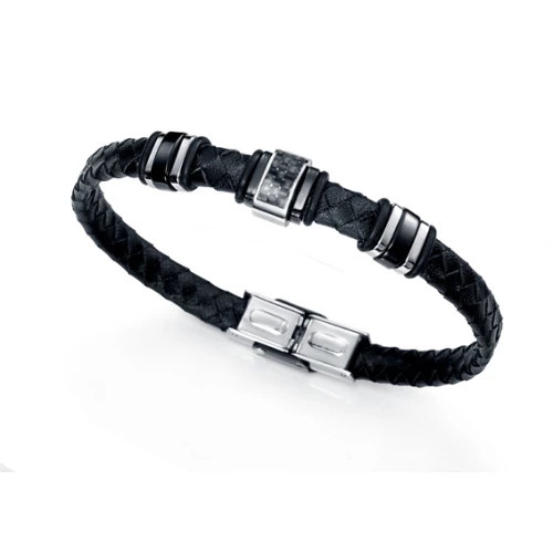 Pulsera de cuero con acero Viceroy fashion motivo central fibra de carbono