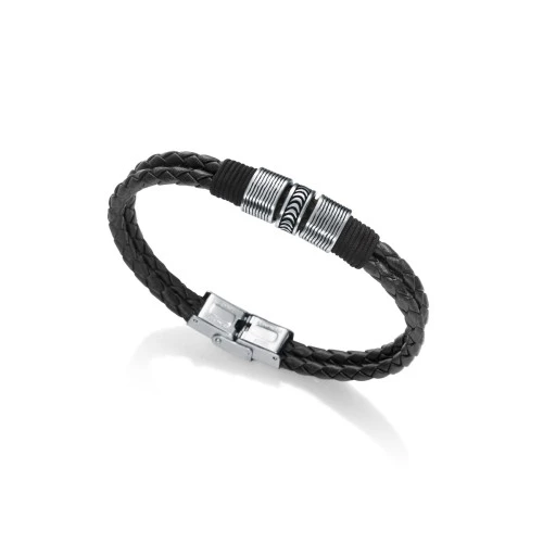 Viceroy pulsera para hombre 64664p01010 cordón trenzado doble en negro con motivos centrales en acero brillo con ip negro, con cierre de solapa y pestaña de seguridad Viceroy, garantía y estuche Viceroy