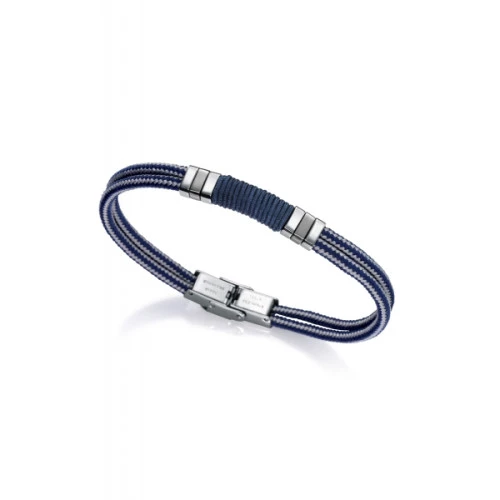 Pulsera cordón nylon y poliester en azul con motivos centrales en acero brillo, con cierre de solapa y pestaña de seguridad Viceroy. Medida de 21,5 cm