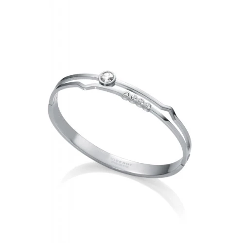 Viceroy pulsera rígida tipo brazalete 75209p01000 para muejr en acero con dos tiras en plateado con circonitas, con bisagra para fácil puesta, garantía y bolsa Viceroy