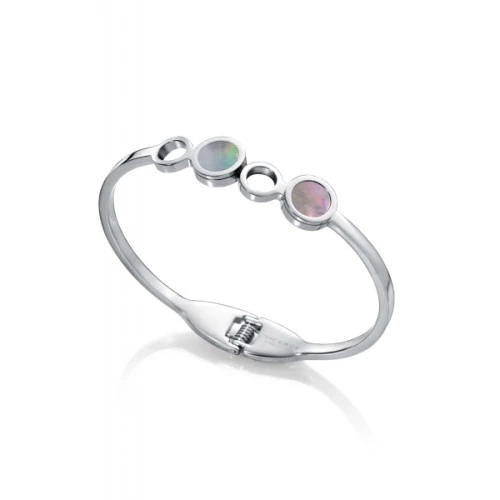 Viceroy pulsera rígida tipo brazalete 75215p01000 colección Spmpara mujer en acero con cuatro circulos dos de ellos con madreperla verde y morado, con bisagra para fácil puesta. Medida de 58,5 milímetros.