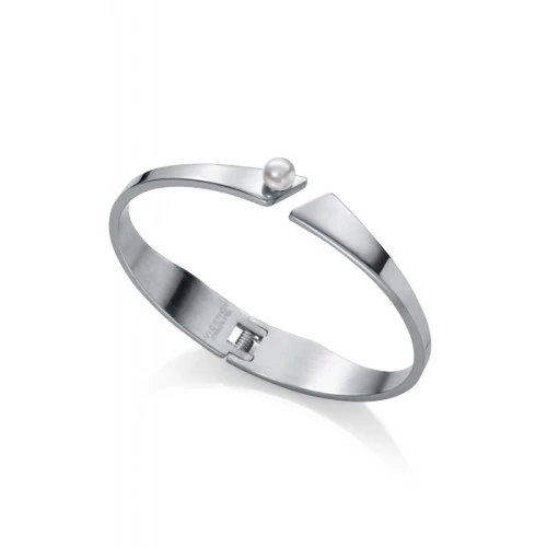 Viceroy pulsera rígida tipo brazalete 75228p01010 colección Chic en acero abierta co perla sintética, con bisagra para fácil puesta, garantía y bolsa Viceroy