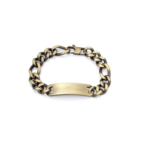 Pulsera tipo esclava de acero ip bronce con eslabones grandes tres y una chapa en liso donde se puede grabar.