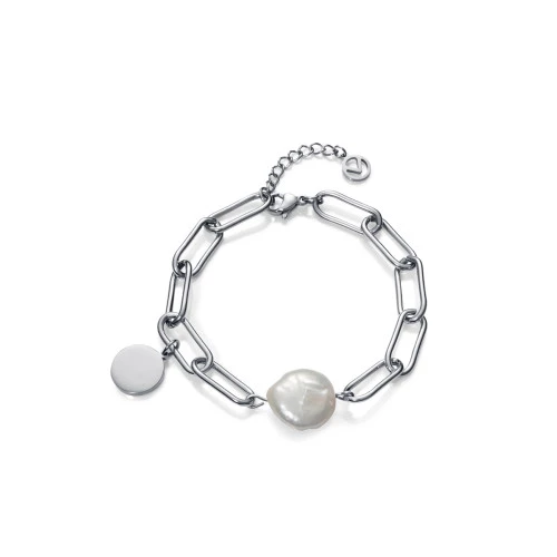 Pulsera Viceroy 1317p01000 para mujer en acero eslabones largos y perla natural, garantía y estuche Viceroy