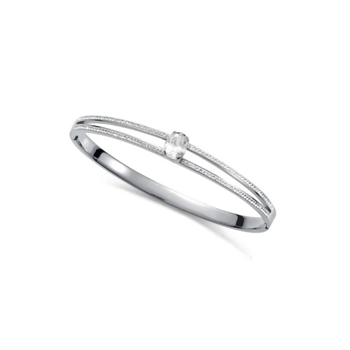 Viceroy pulsera rígida tipo brazalete 1356p01010 para mujer en acero dos tiras con circonitas y una central ovalada con bisagra para fácil puesta, garantía Viceroy