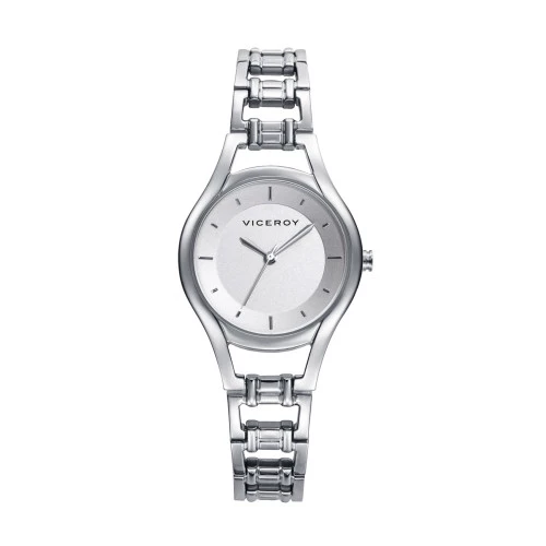 Reloj Viceroy 401146-07 para mujer colección Air. Caja y brazalete de acero con cierre de pestaña de seguridad Viceroy. Brazalete tipo joya. Esfera en blanco con índices y agujas finas y elegantes en plateado. Resistente al agua. Diámetro de la caja 30 milímetros. Estuche y garantía oficial Viceroy