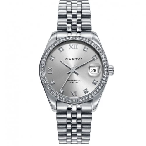 Viceroy reloj 42416-83 para mujer con caja y brazalete jubile de acero, tres agujas esfera gris con piedras y agujas en plateado, garantía Viceroy