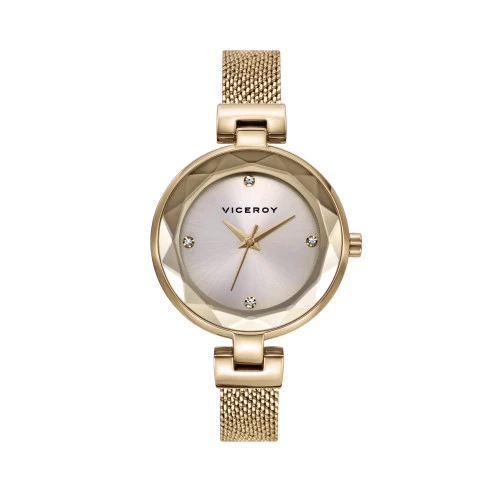 Viceroy reloj 471298-27 para mujer en acero dorado caja bisel facetado y brazalete milanesa dorada, esfera en claro con índices y agujas dorado, garantía Viceroy