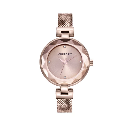Viceroy reloj 471298-97 para mujer en acero rosa caja bisel facetado y brazalete milanesa rosa, esfera en rosa con índices y agujas dorado rosa, garantía Viceroy