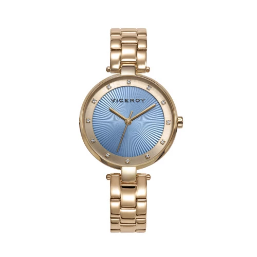 Reloj Viceroy 471300-67 para mujer colección Chic. Caja en acero dorado con brazalete de acero dorado con cierre mariposa de seguridad Viceroy. Esfera en azul con piedras en bisel interno en los índices, agujas finas y elegantes en dorado. Resistente al agua. Diámetro de la caja 32 milímetros. Estuche Viceroy y garantía oficial Viceroy