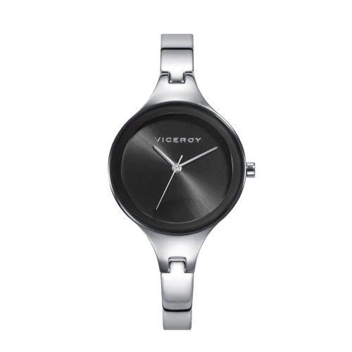 Reloj Viceroy 471302-50 para mujer colección Air. Caja en acero con correa brazalete con cierre de seguridad Viceroy. Esfera en negro con bisel negro con agujas finas y elegantes en plateado. Resistente al agua. Diámetro de la caja 30 milímetros. Estuche Viceroy y garantía oficial Viceroy